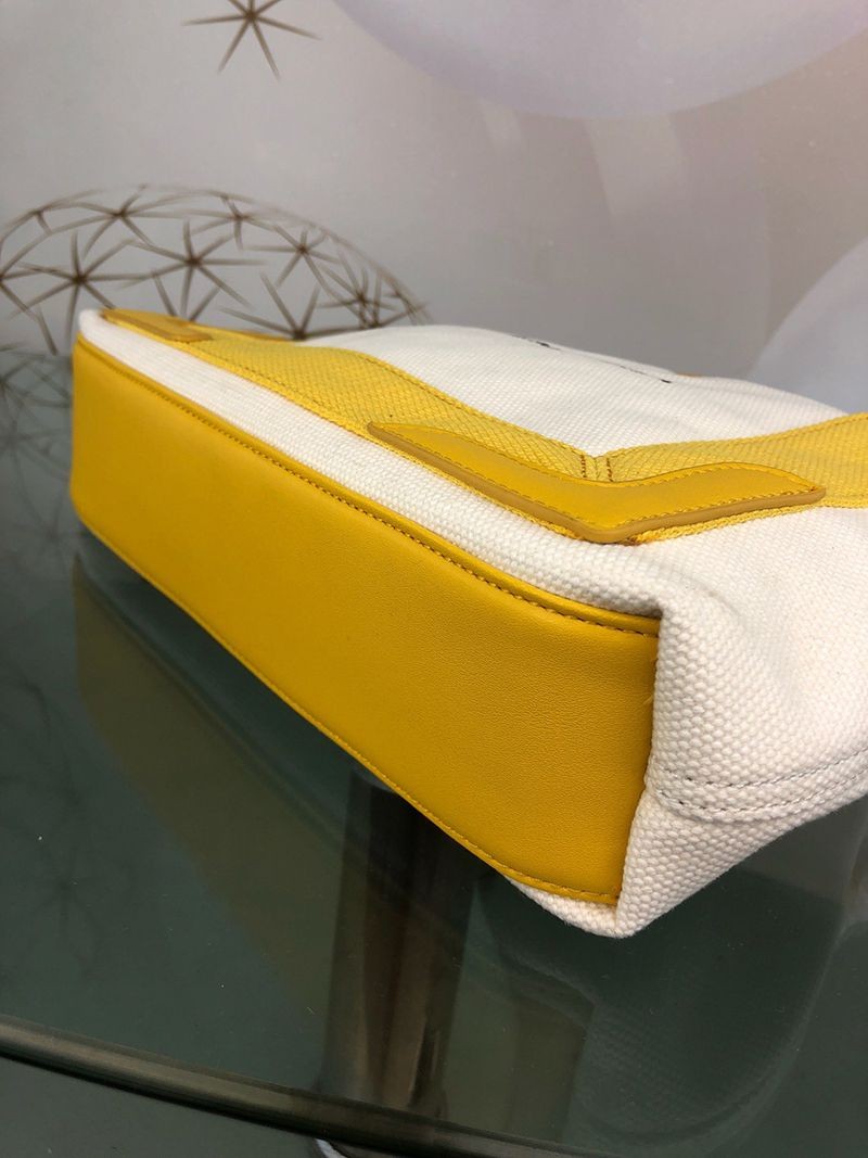 バレンシアガ ネイビーカバス 偽物 XS トート ベージュ×イエロー