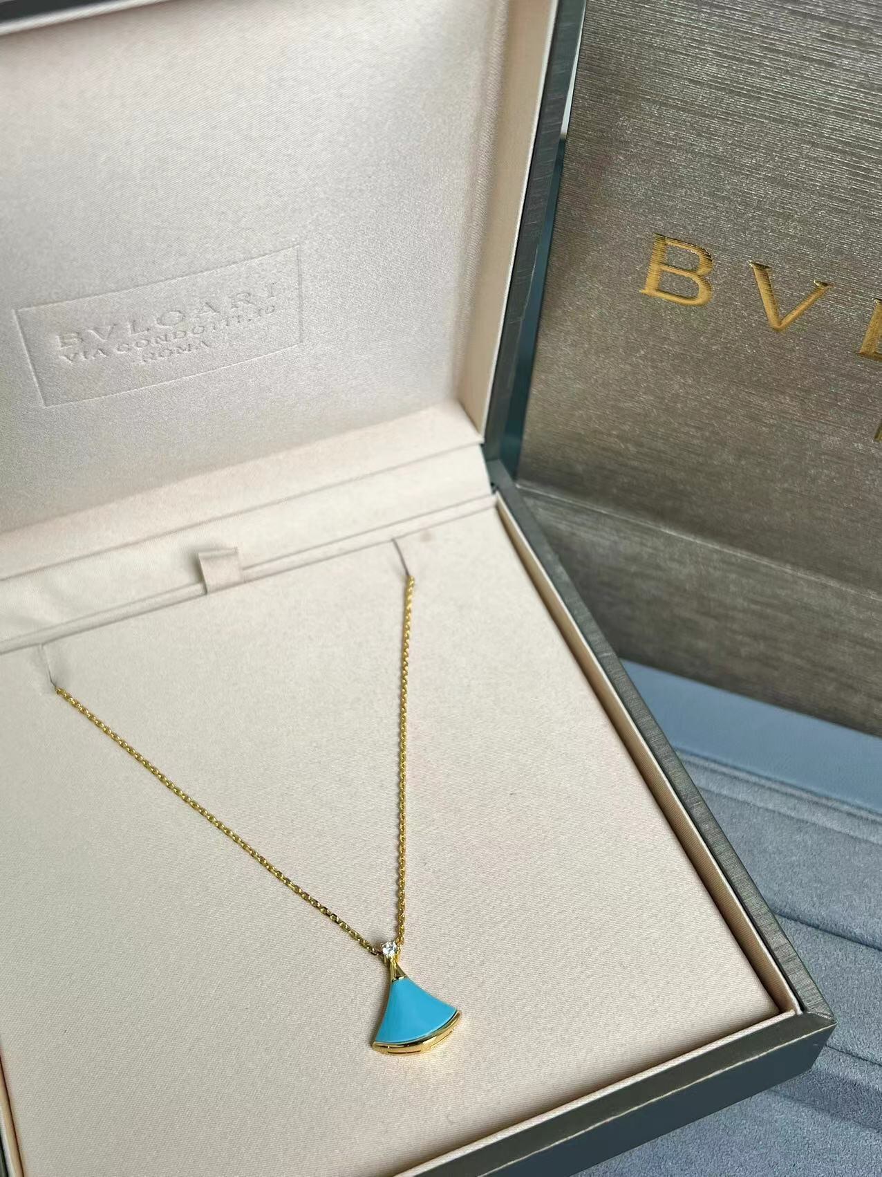 ブルガリのターコイズファンネックレスは特に白く、非常に明るい色をしています。ブルガリのスプリングネックレスと比べて、優しくて繊細で、よりユニークなファンネックレスの方が好きです。さらに、この青色は本当に若々しく妖精らしく見せてくれますし、青色は特に明るいです。超老化防止効果あり。個人的にはすごく女の子っぽい感じがすると思います。