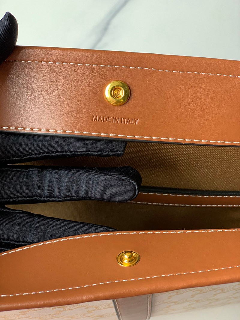 上質なカーフレザーとトリオンフキャンパスで仕立てられたミディアム バケット。