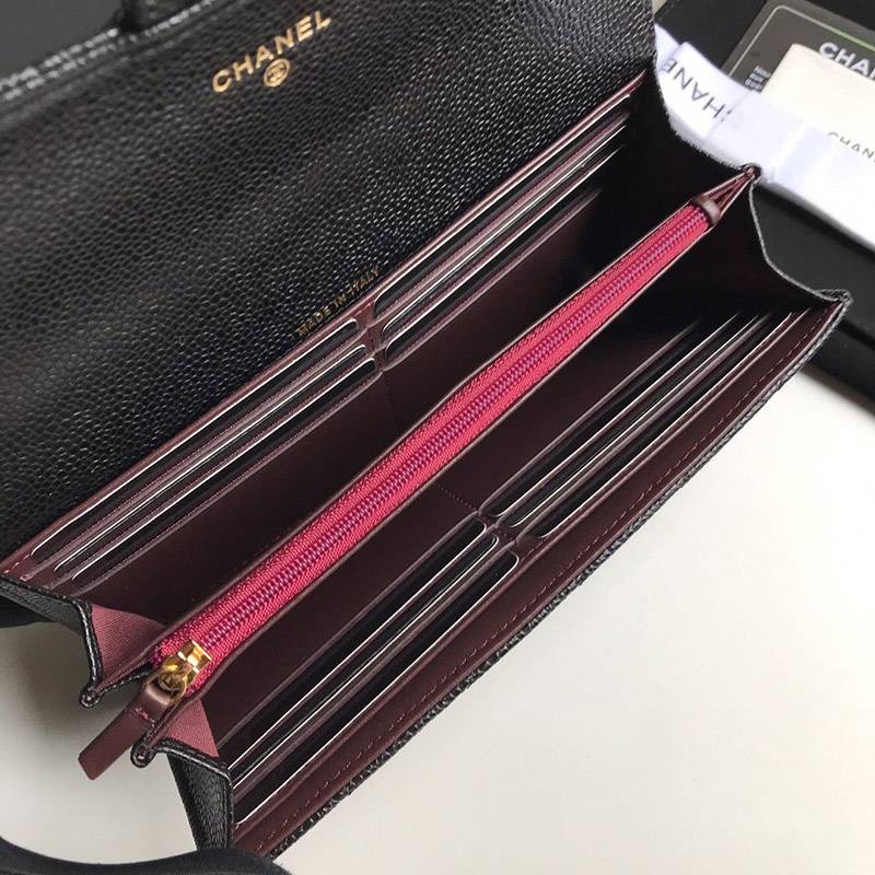 シャネル スーパーコピー 二折りカブセ長財布 キャビア A80758