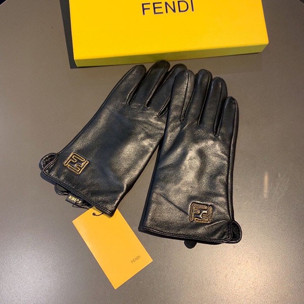 フェンディ ロゴ入り ブラックラムレザーのグローブ 偽物