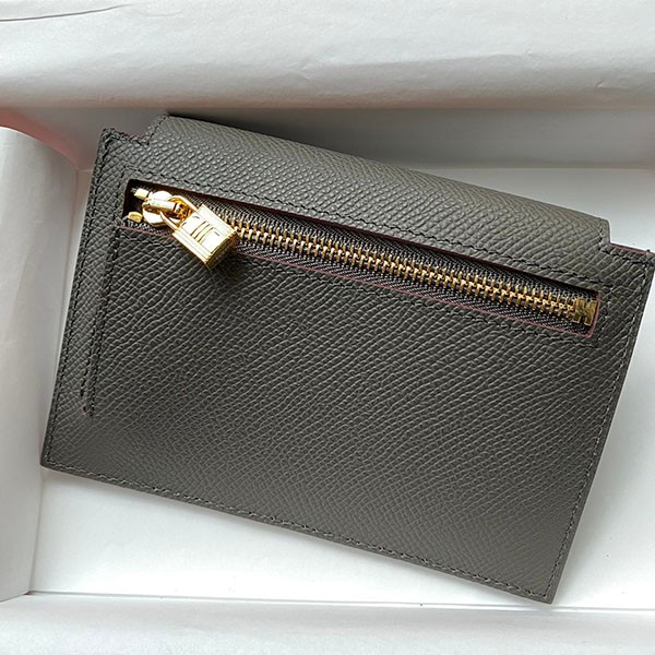 中央にポケット、ジッパー付きの小銭入れ、金メッキのファスナー開閉