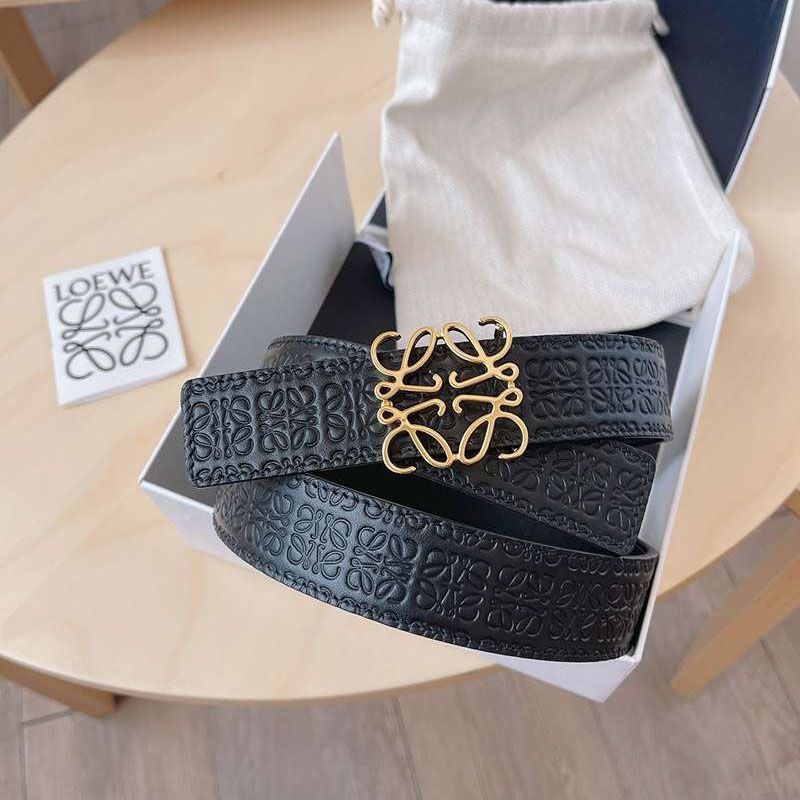 ロエベ カーフレザー アナグラムバックルリバーシブルベルト偽物 3.0 cm