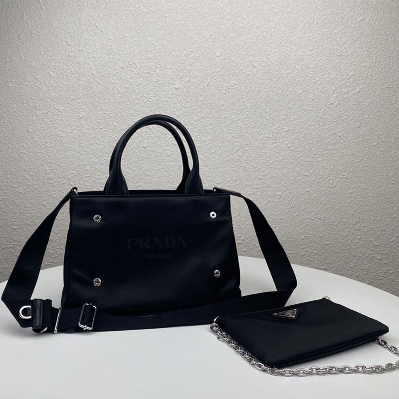 【プラダ】ナイロン トートバッグ 偽物チェーンハンドルポーチ付 2WAY