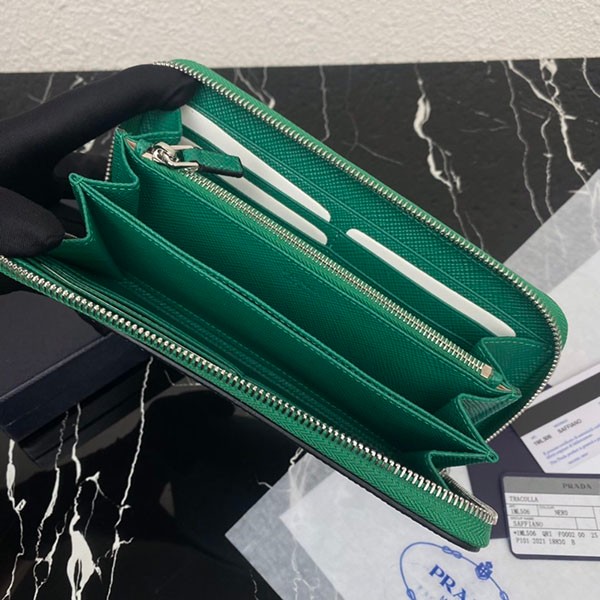 プラダ サフィアーノエンボスレザー ジップアラウンド長財布 偽物 グリーン