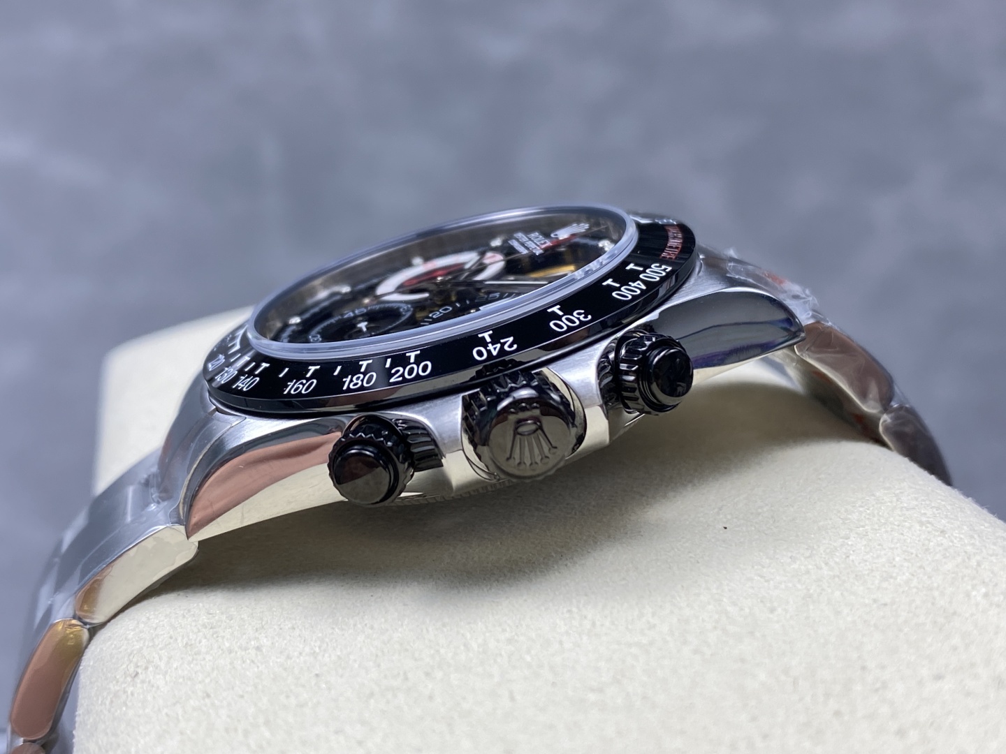 1:ムーブメントは、改良された4130ムーブメントの真新しいバージョンです。各パーツは、非常に高い精度で1つずつ分解および組み立てられ、くり抜きと手作業による角のカットが行われ、くり抜き、メインボード、ブリッジ、さらにはゼンマイボックスまで完全に展開されます。ほとんどのパーツは、コーティング、面取り、研磨などの精巧な職人技が施されており、完全なくり抜きが展示されており、目を楽しませてくれます。